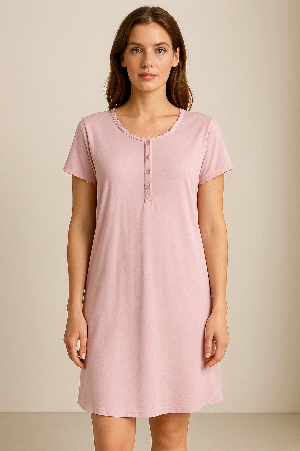 Νυχτικό Γυναικείο Ροζ Βαμβακερό με Κουμπάκια – Άνετο & Κομψό για Ύπνο και Χαλάρωση